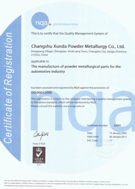 关于常熟市迅达粉末冶金有限公司简介:公司始建于1992年6月,总资产达8000余万元,其中设备资产3500余万元,占地面积20000平方米,建筑面积近15000平方米,拥有60多台3-1000T的成形机、各类精整机、烧结炉、CNC全自动数控加工设备及各类专用设备200余台(套)。公司于2008年通过TS16949与ISO14001认证,目前已完成体系升级。